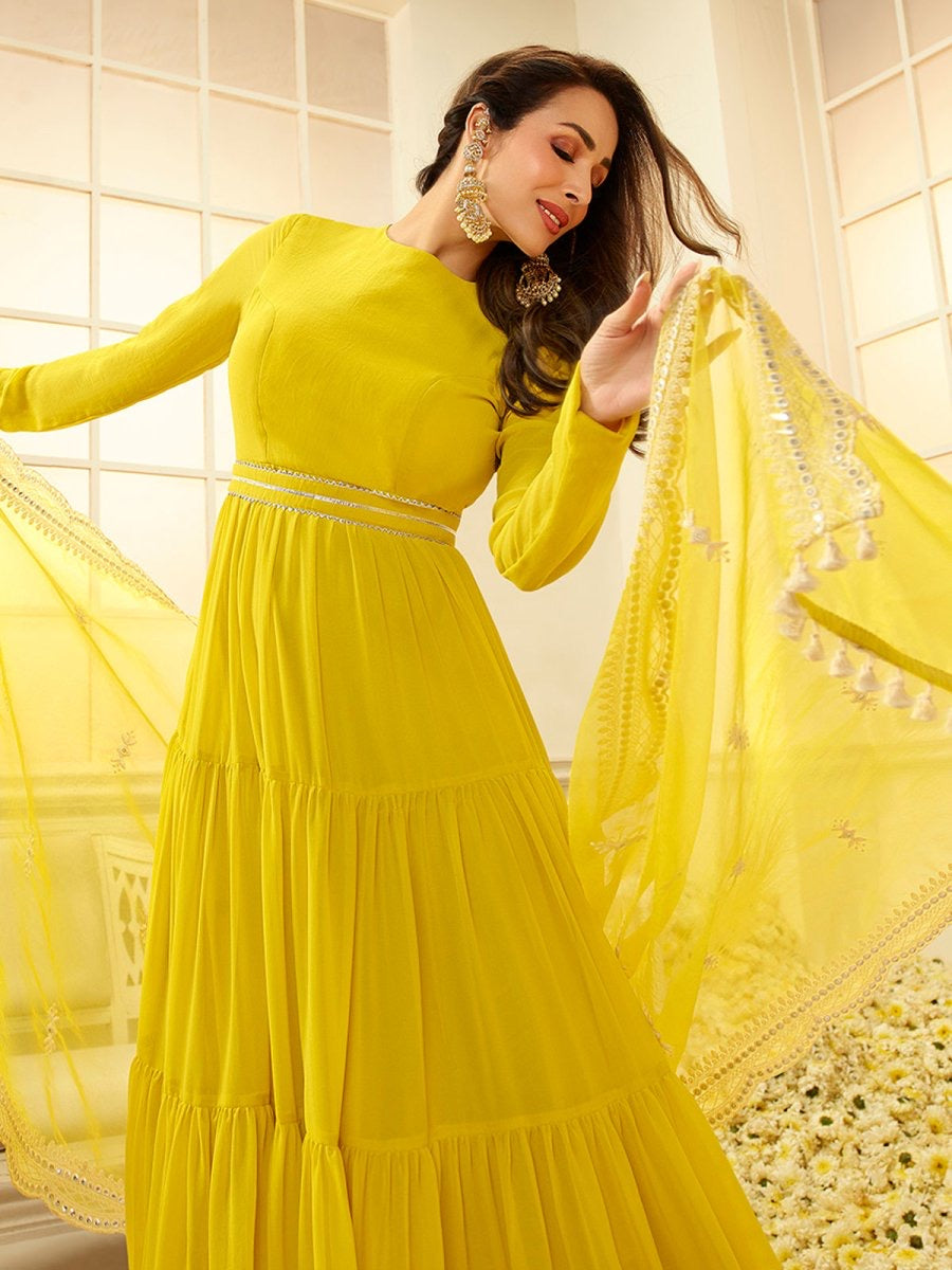 TOP: Georgette, TOP INNER: Shantun, DUPATTA: Organza, Embellished Belt, Dry Clean